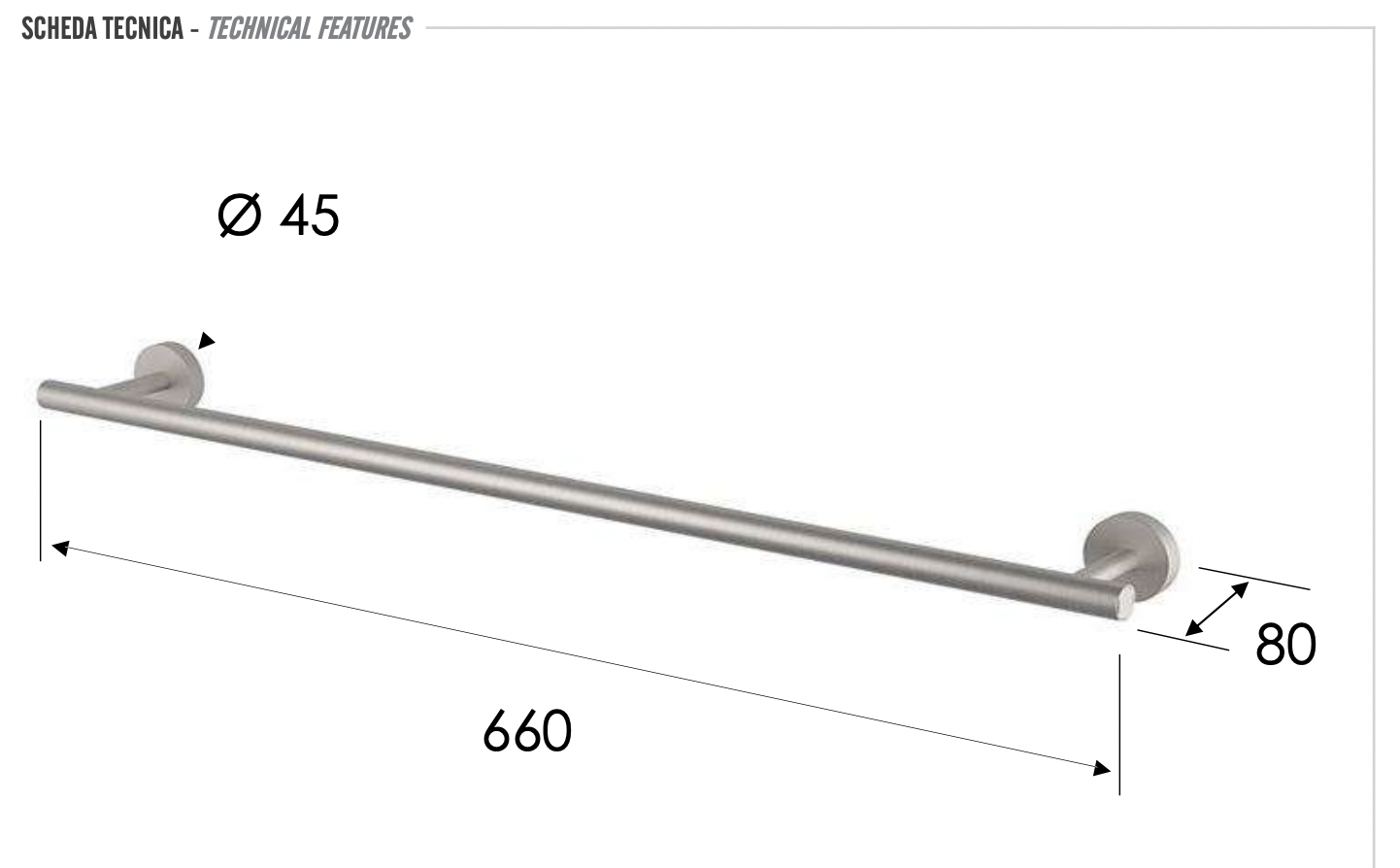 Полотенцедержатель 66 см Remer INOX SSXI30, нержавеющая сталь