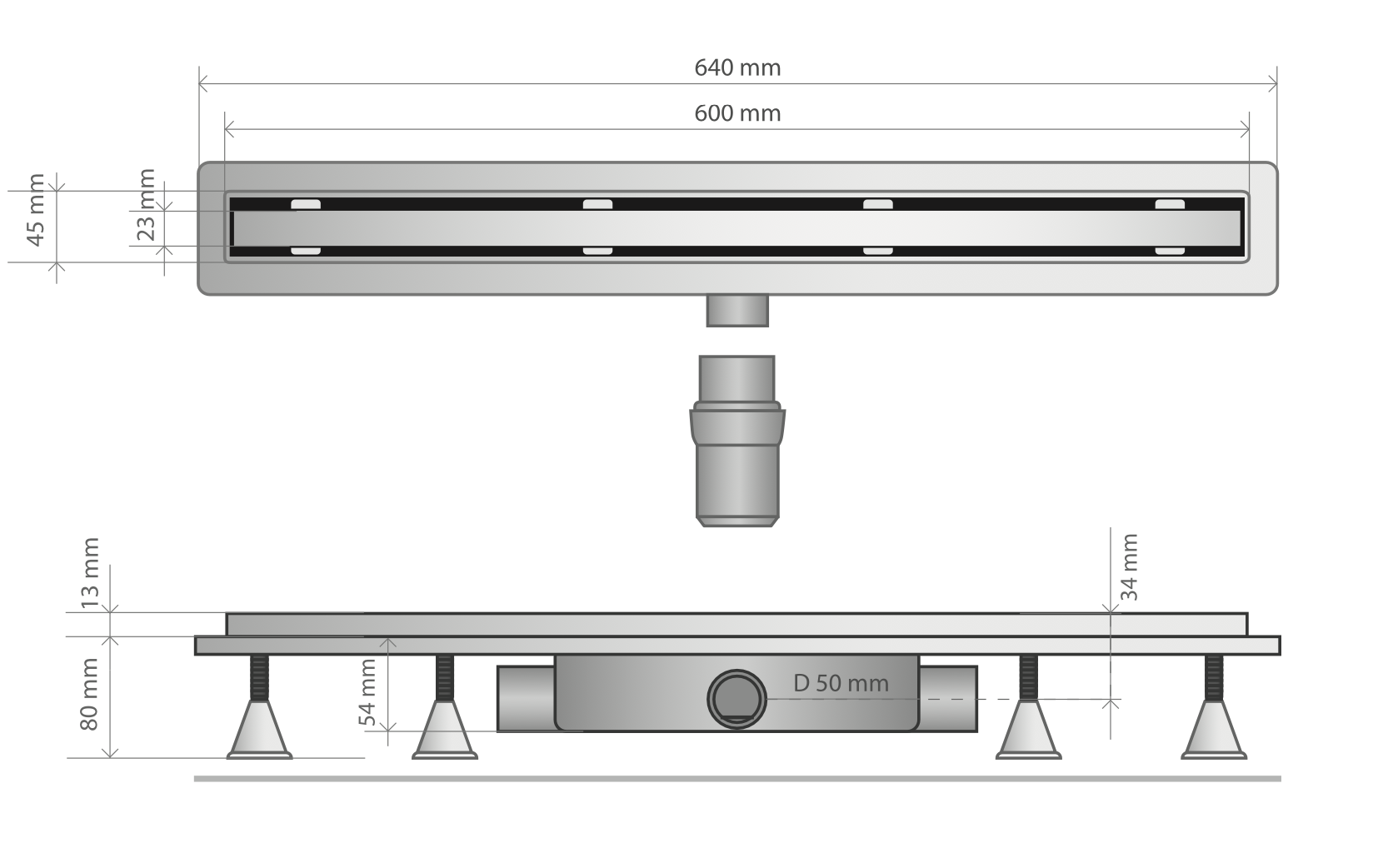 Дренажный канал 60 см, решетка под плитку, гидрозатвор, ABS, горизонтальный выход OMP Tea Basicflow 4943.803.8