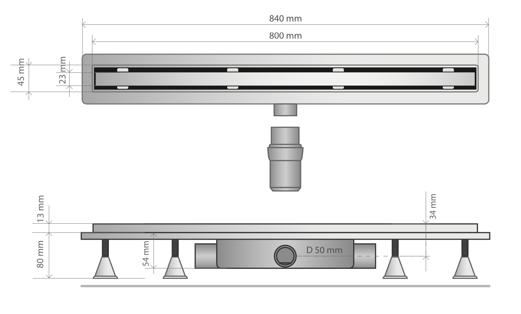 Дренажный канал 80 см, решетка под плитку, гидрозатвор, ABS, горизонтальный выход OMP Tea Basicflow 4943.203.8