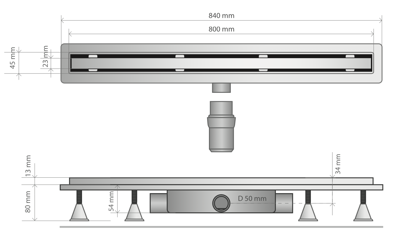 Дренажный канал 80 см, решетка под плитку, сухой затвор, ABS, горизонтальный выход OMP Tea Basicflow 4943.273.8
