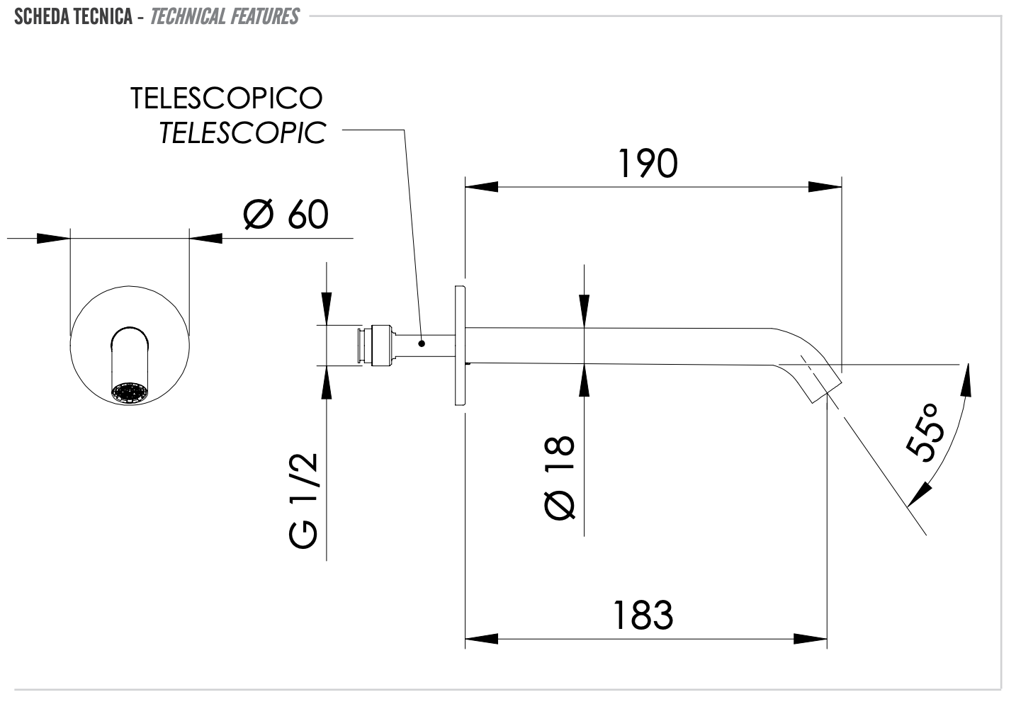 Излив настенный 19 см Remer X Style INOX SS91XL, нержавеющая сталь