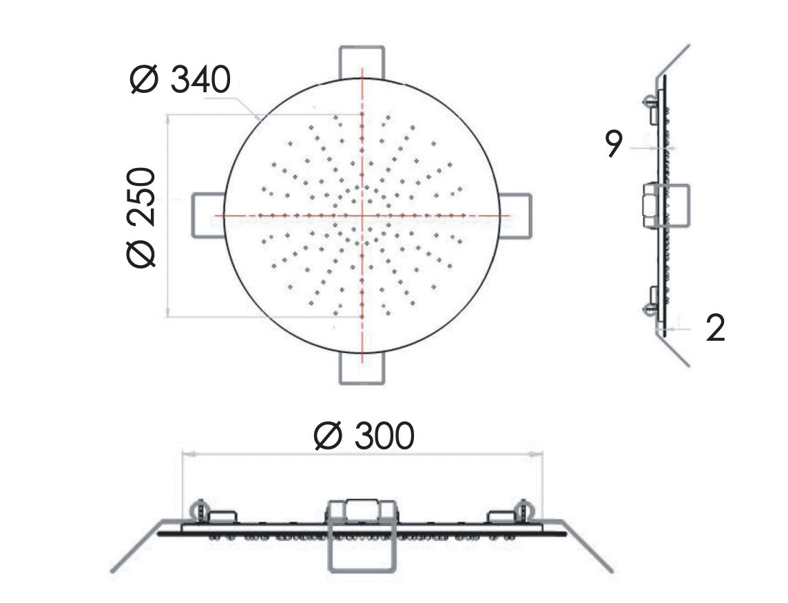 Верхний душ потолочный 34 см Remer INOX SS357EFM34