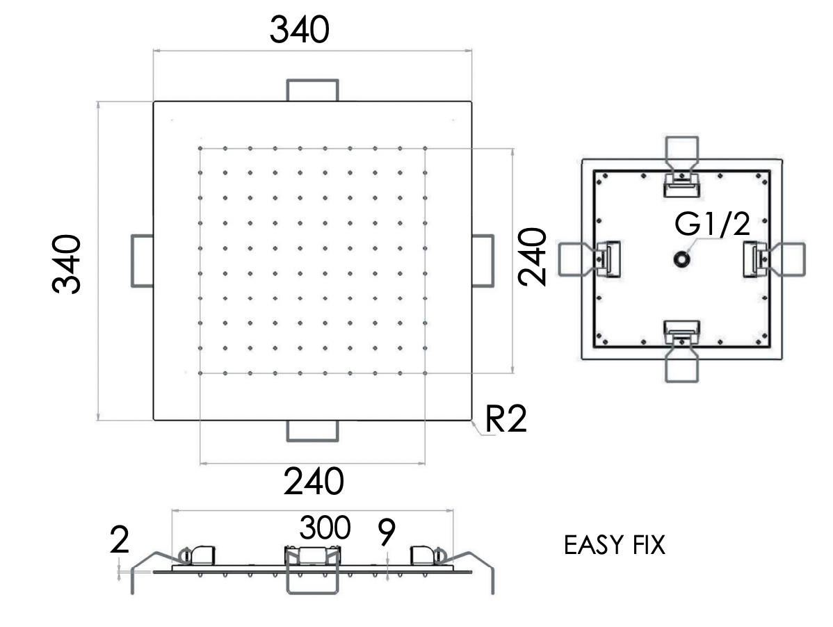 —Верхний душ потолочный 34 см Remer INOX SS357EFS34