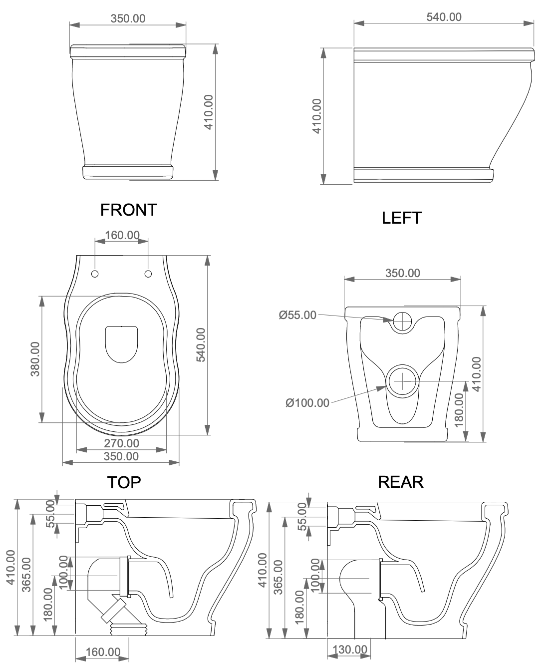 Чаша напольного унитаза с креплением GSG Ceramic Design Time RUTIWC01000FI, белый глянцевый