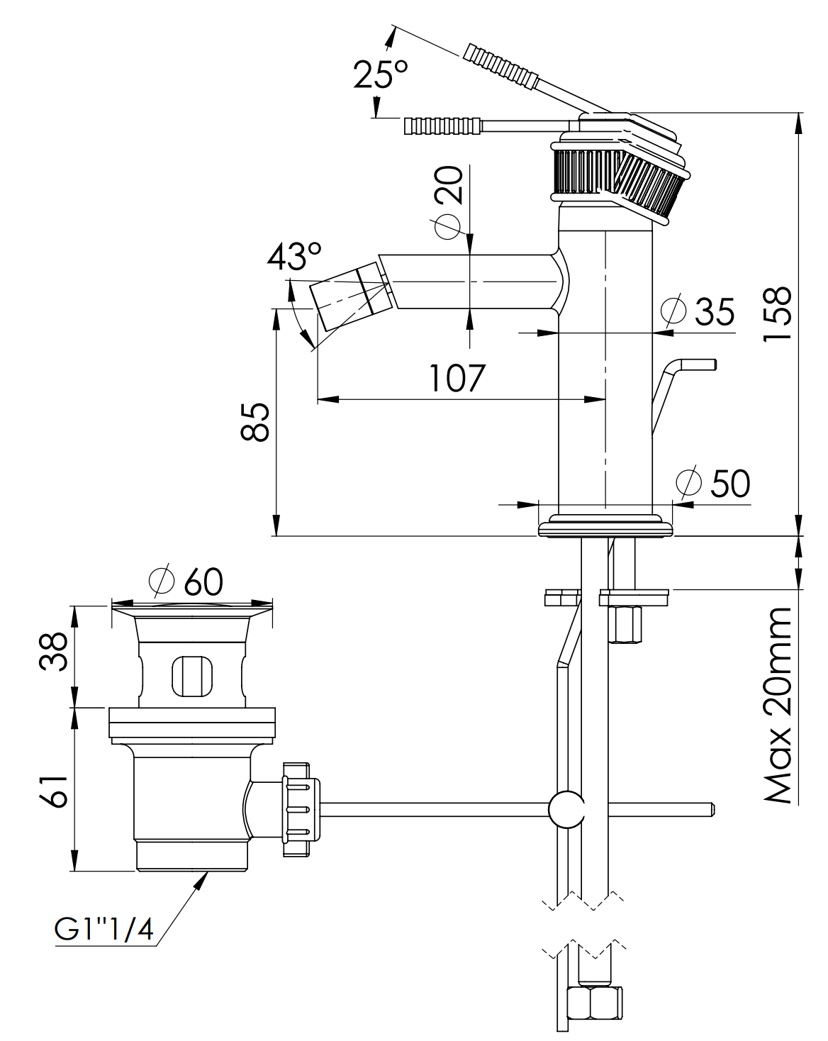 Смеситель для биде Remer Atelier AL20BR, бронза масляная
