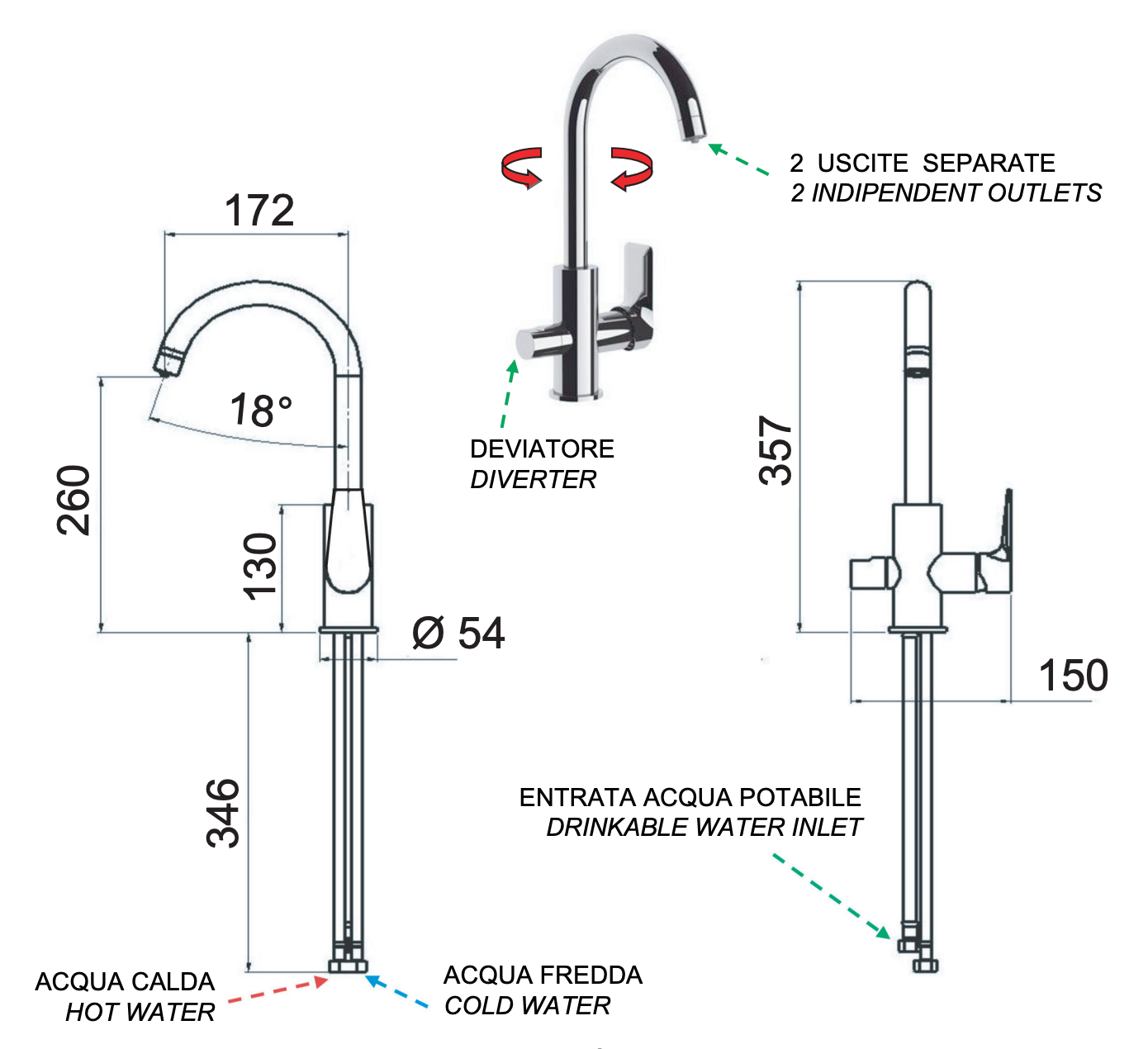 Смеситель для кухни c подключением к фильтру Remer Infinity I79DW