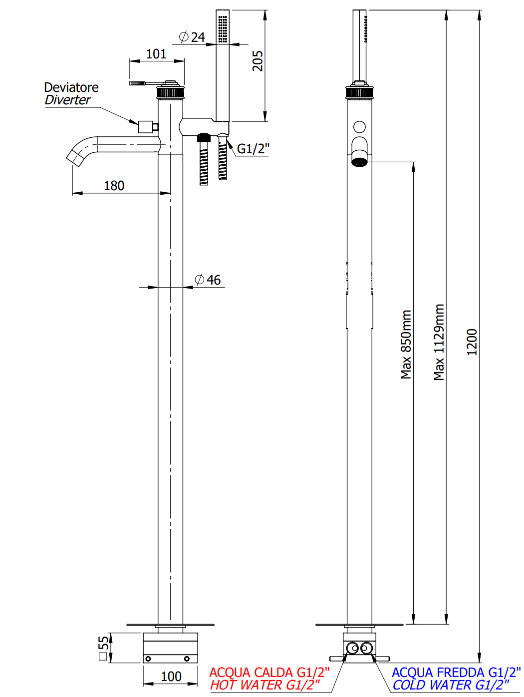 Смеситель для ванны Remer Atelier AL08NO, черный матовый