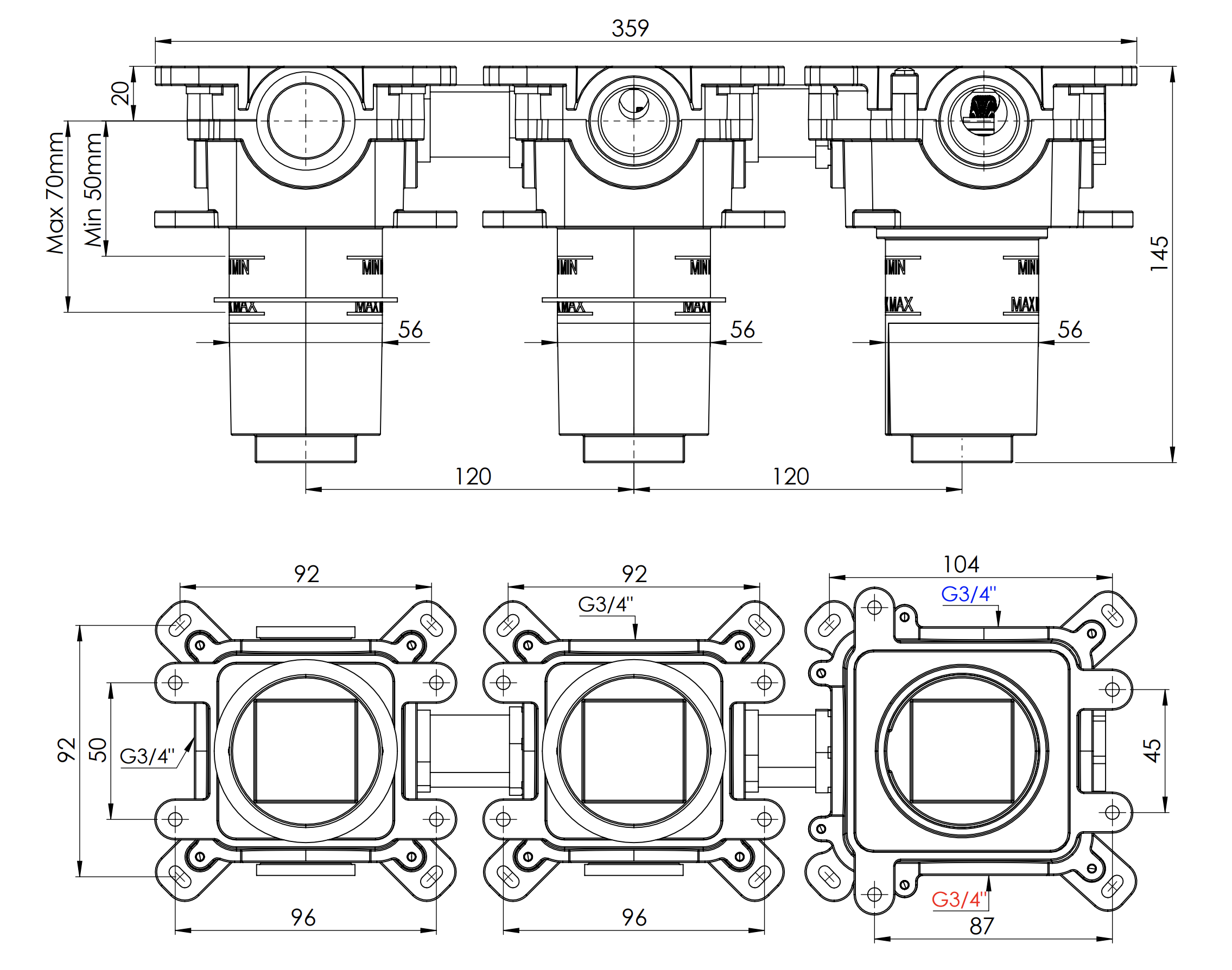 Скрытая часть на 2 выхода Remer Thermoset RRBOX99D2P