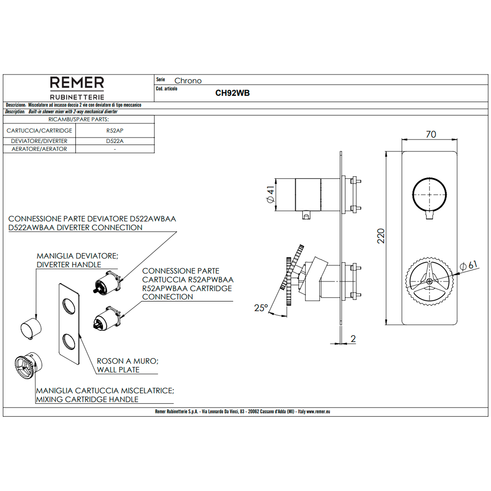 Смеситель для душа Remer Chrono CH92WBBO, белый матовый
