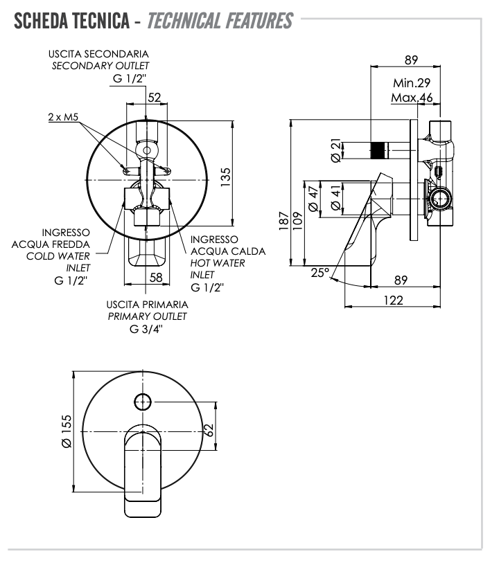 —Смеситель для душа Remer Infinity I09HNO, черный матовый