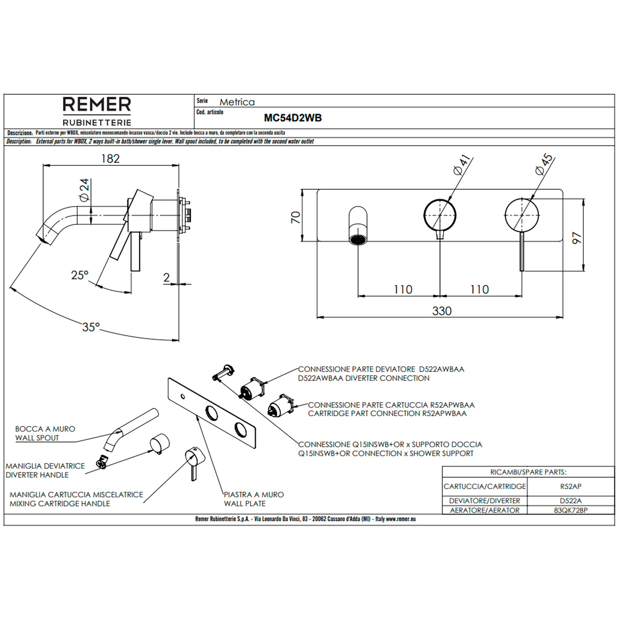 —Смеситель для ванны Remer Metrica MC54D2WB