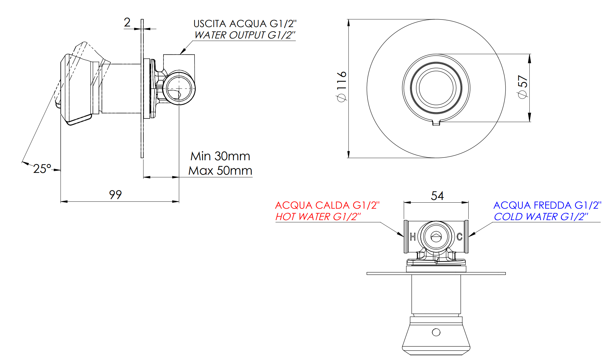Смеситель для душа Remer Element ET30LRP, медь брашированная