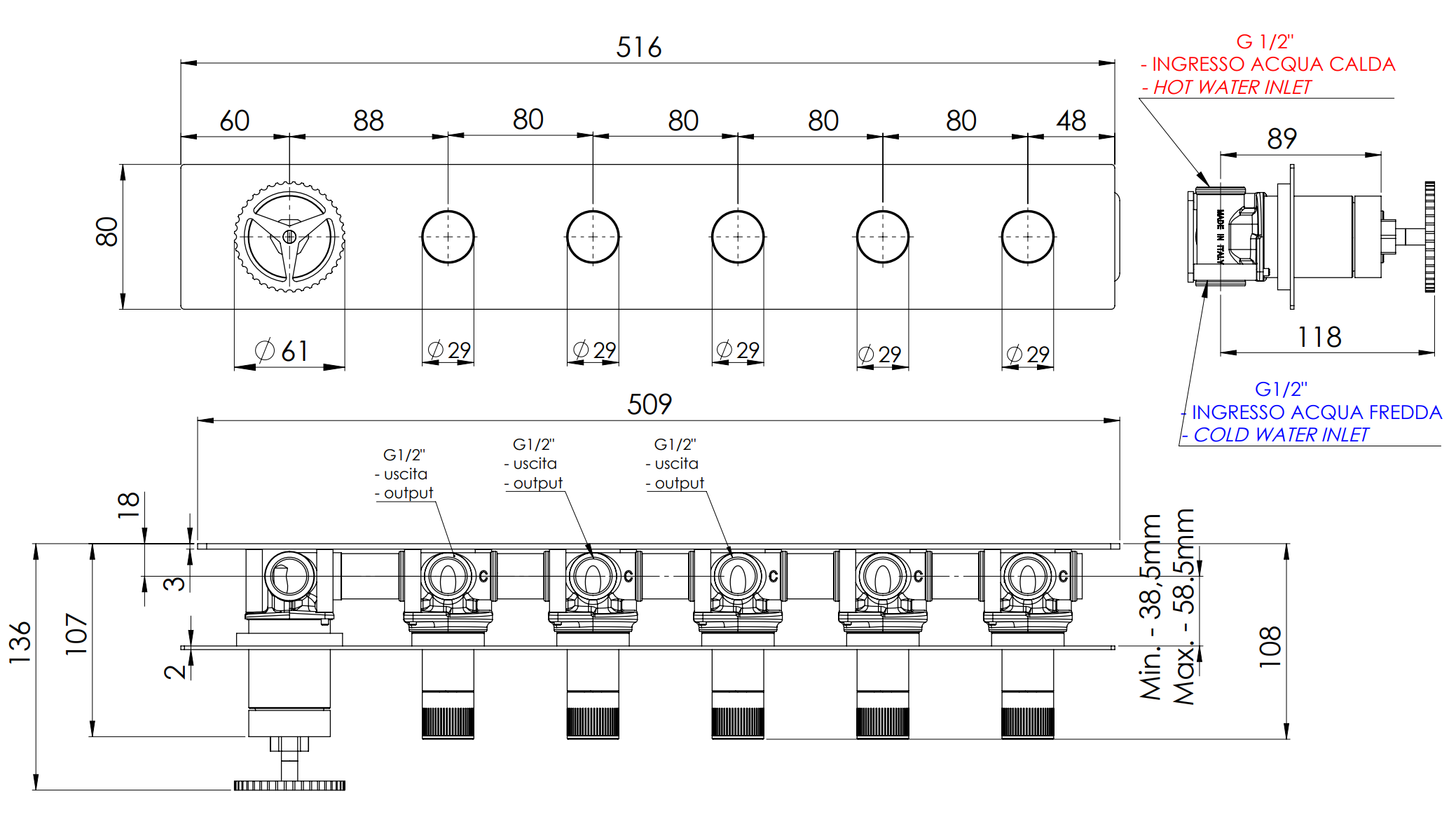 Смеситель для душа Remer Chrono CH98D5XV, сталь