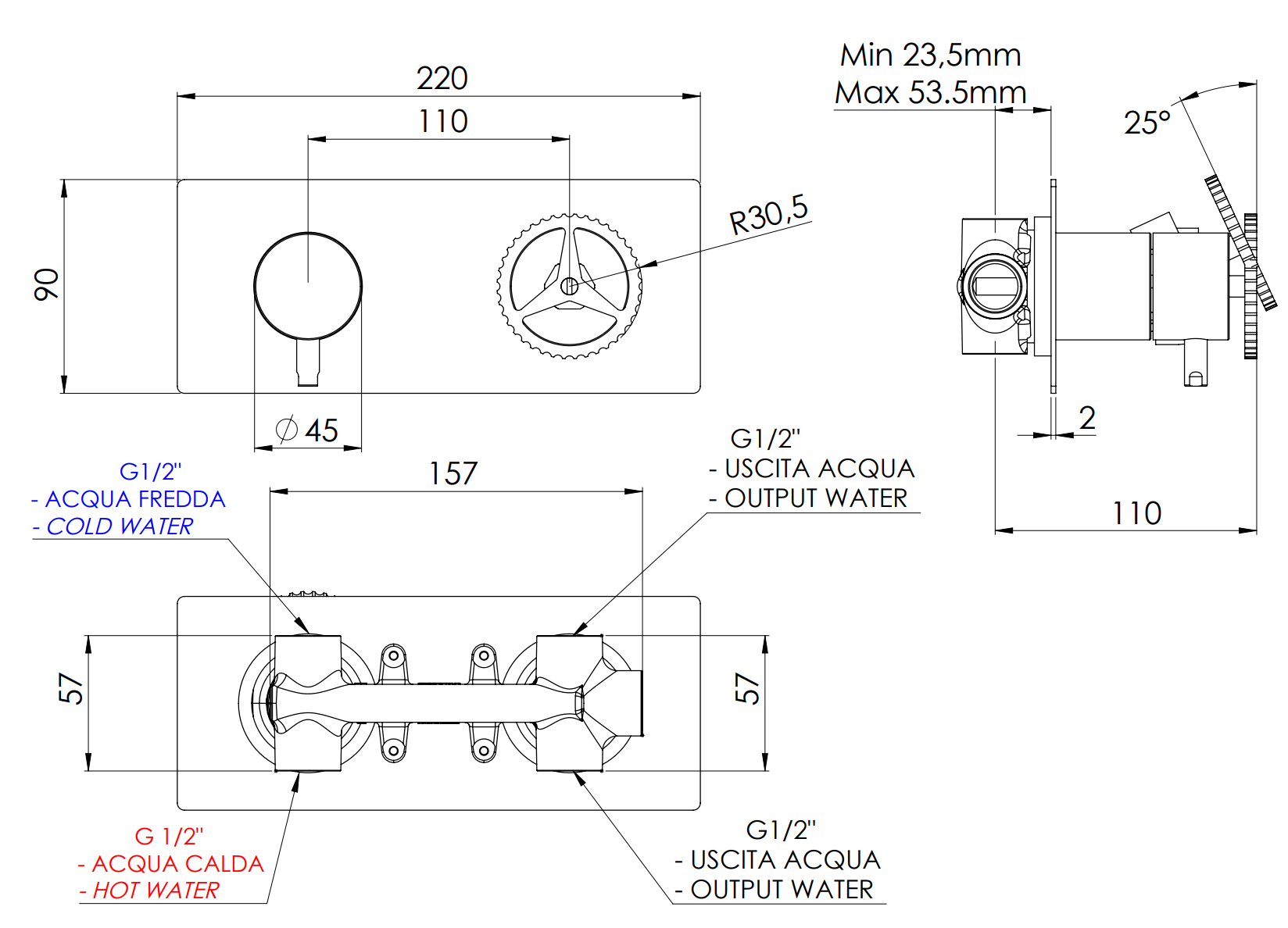 • Верхний душ