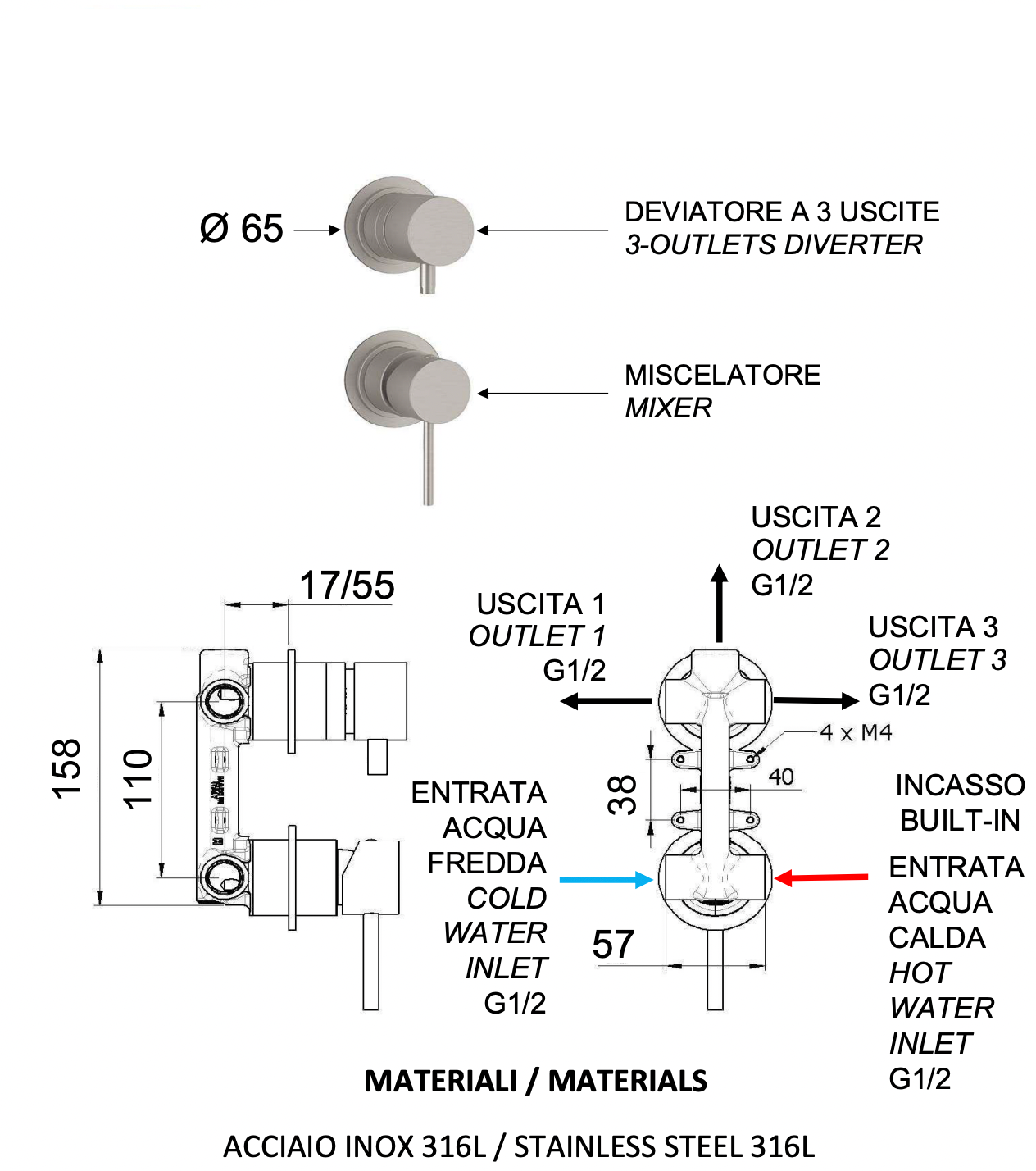 Смеситель для душа Remer X Style INOX SSX93P, нержавеющая сталь