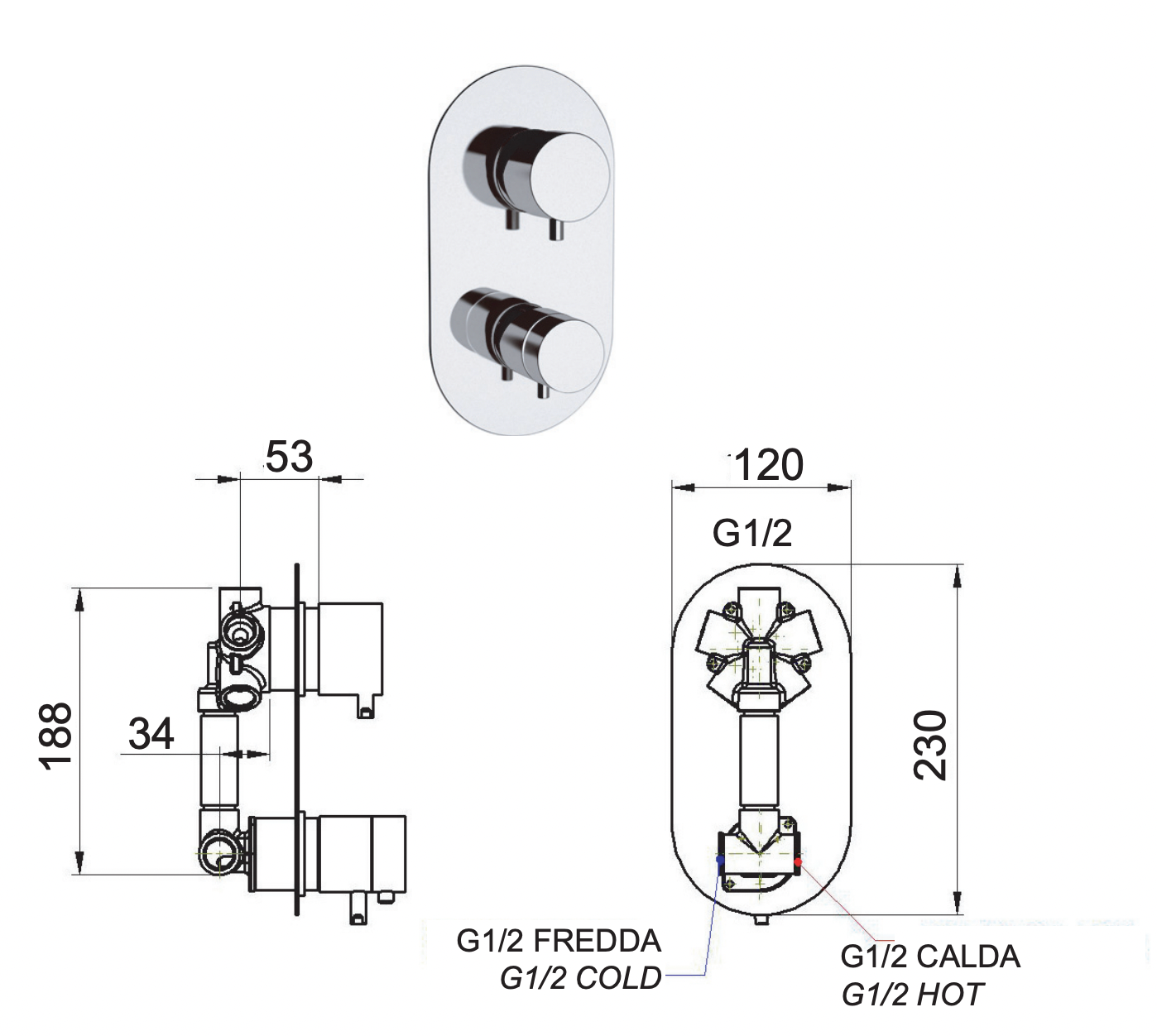 Смеситель термостатический для душа Remer Elegance NT94