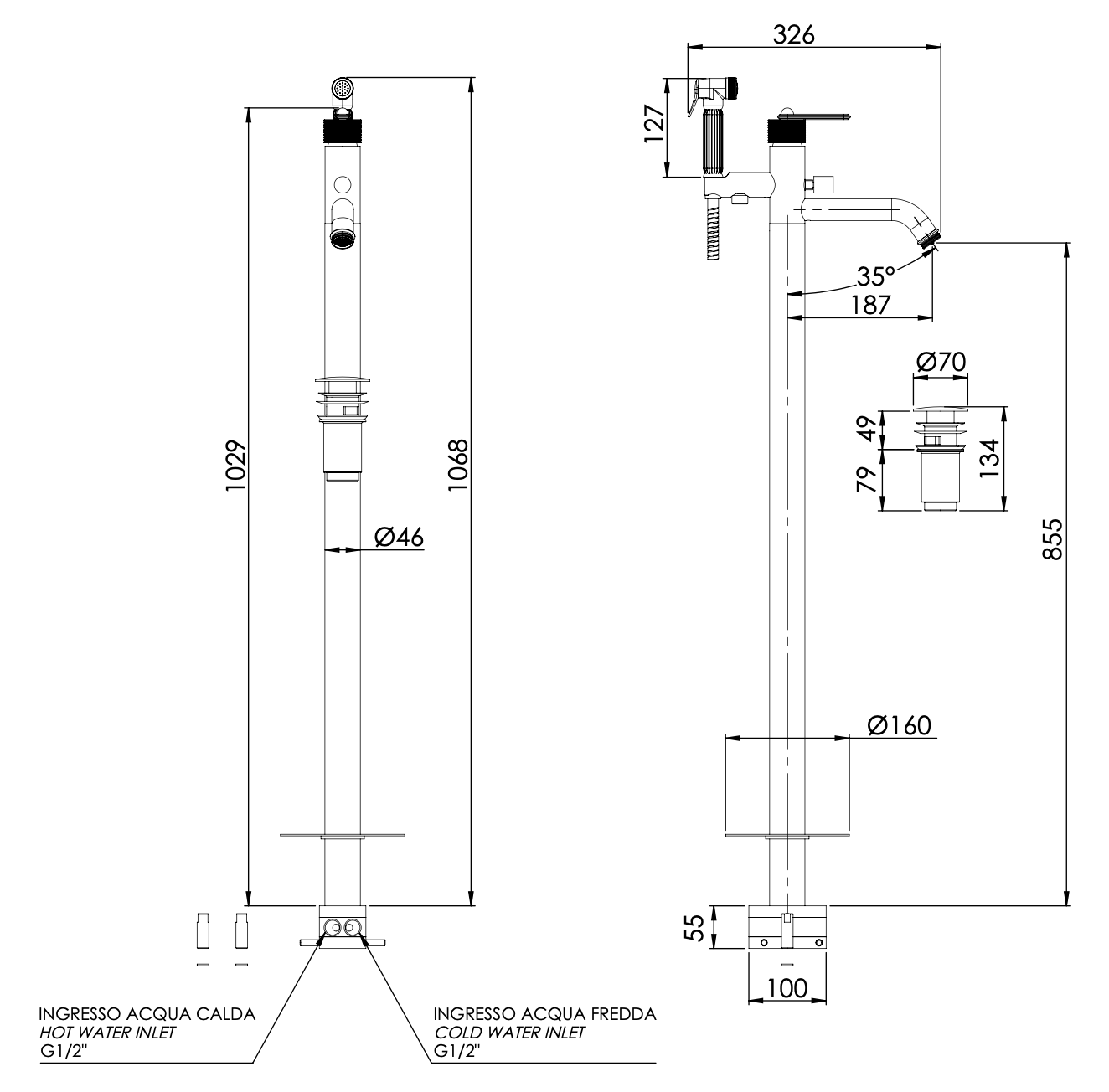 Смеситель для ванны Daniel Brooklyn BY67815, чёрный матовый