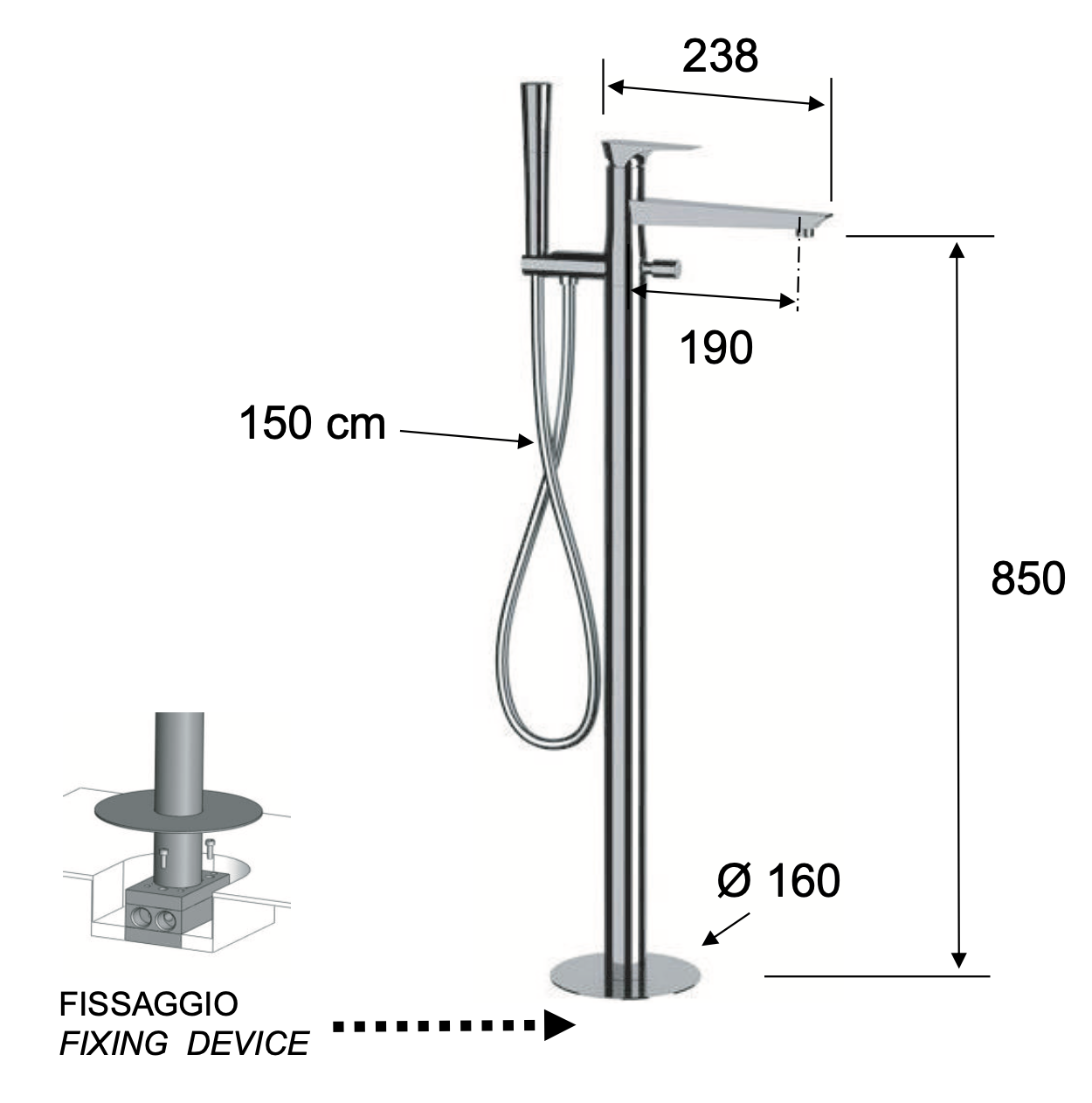Смеситель для ванны Daniel Diva DV67815, чёрный матовый