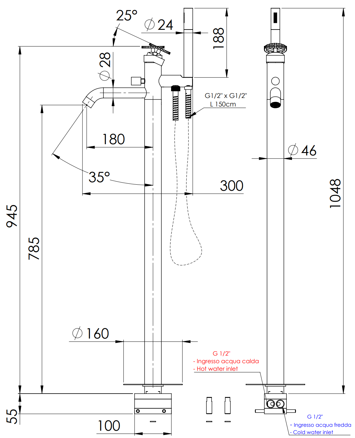 Смеситель для ванны Remer Chrono CH08BR, бронза масляная