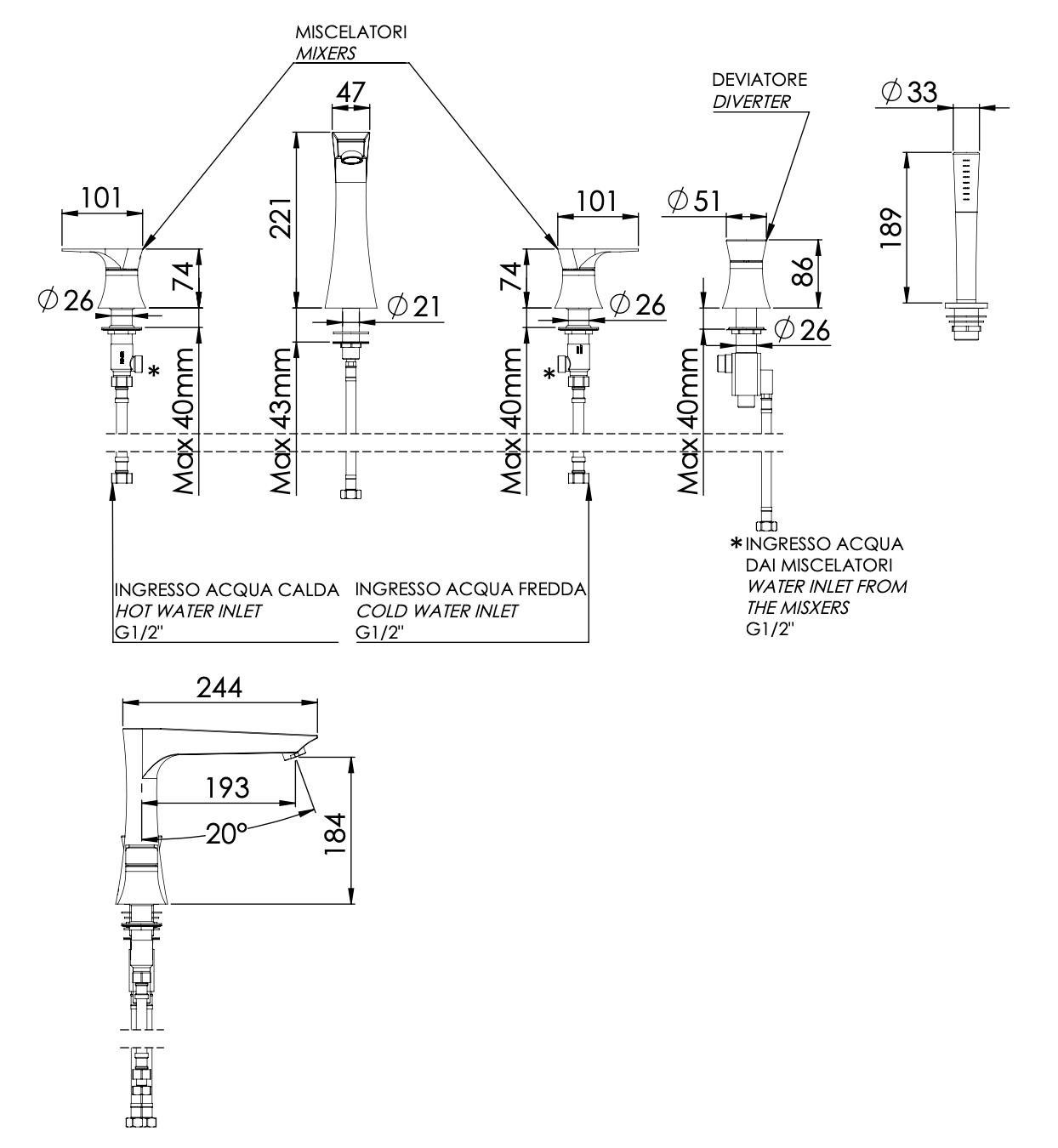 Смеситель для ванны Daniel Diva DV449115, чёрный матовый